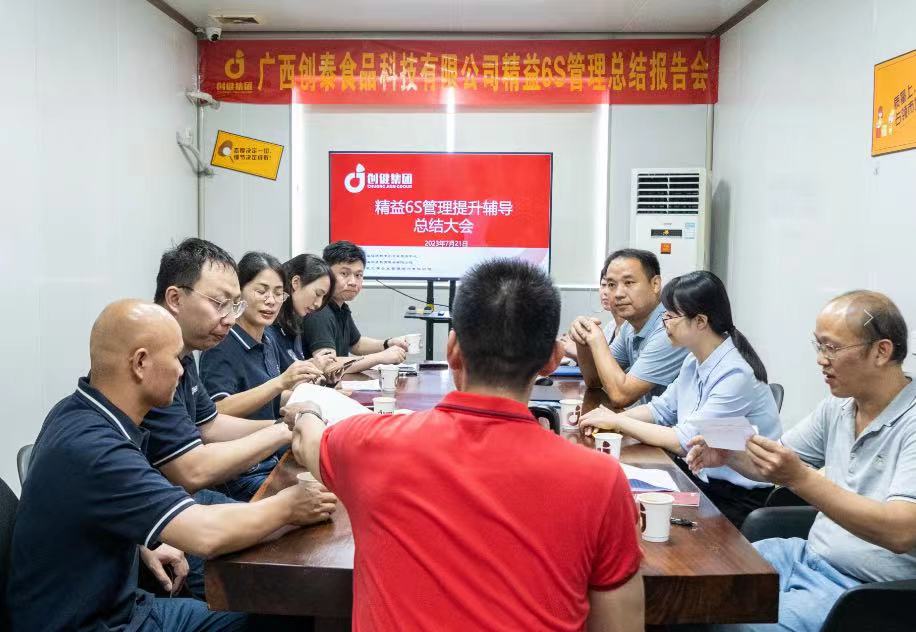 7月21日下午,尊时凯龙人生就博集团旗下广西创泰食品科技有限公司精益6S管理总结报告会在工厂会议室召开。